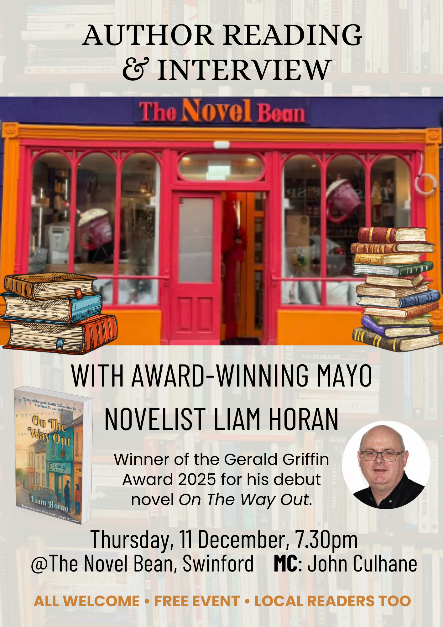 I’m delighted to be the guest for the first-ever Writer Event at The Novel Bean in Swinford on Thursday, December 11, where I’ll be their inaugural Featured Author of the Month. The event starts at 7.30pm, and everyone is welcome.